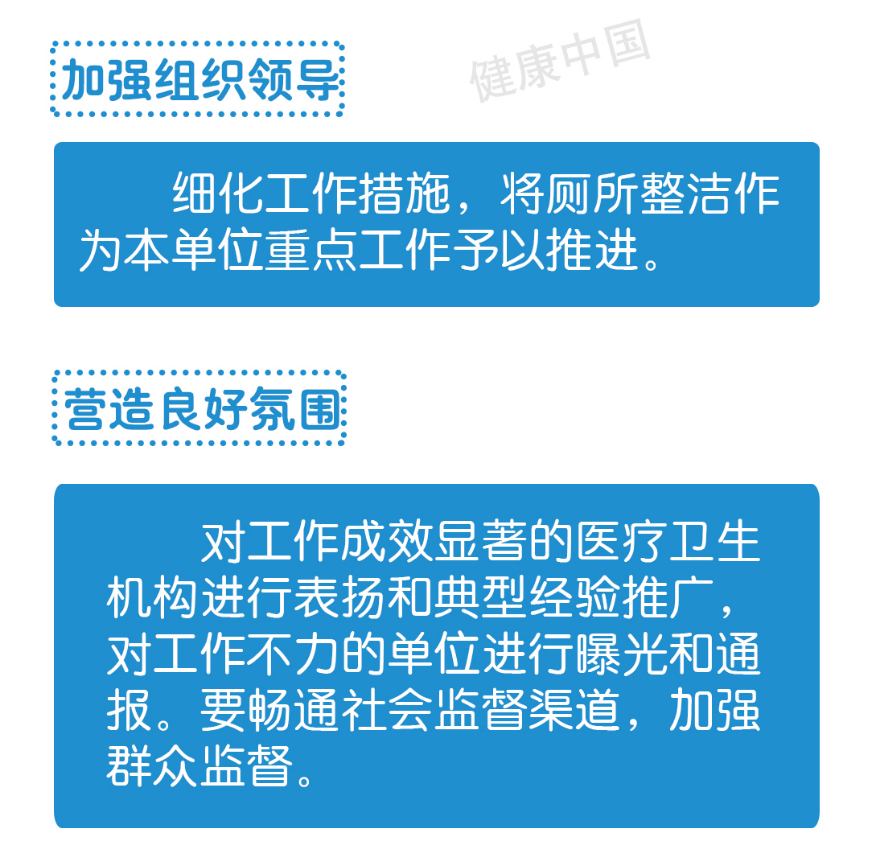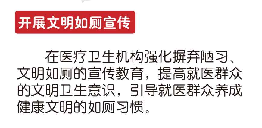 日前,國(guó)家衛(wèi)生健康委辦公廳、中醫(yī)藥局辦公室印發(fā)了《關(guān)于開展醫(yī)療衛(wèi)生機(jī)構(gòu)廁所整潔專項(xiàng)行動(dòng)的通知》。