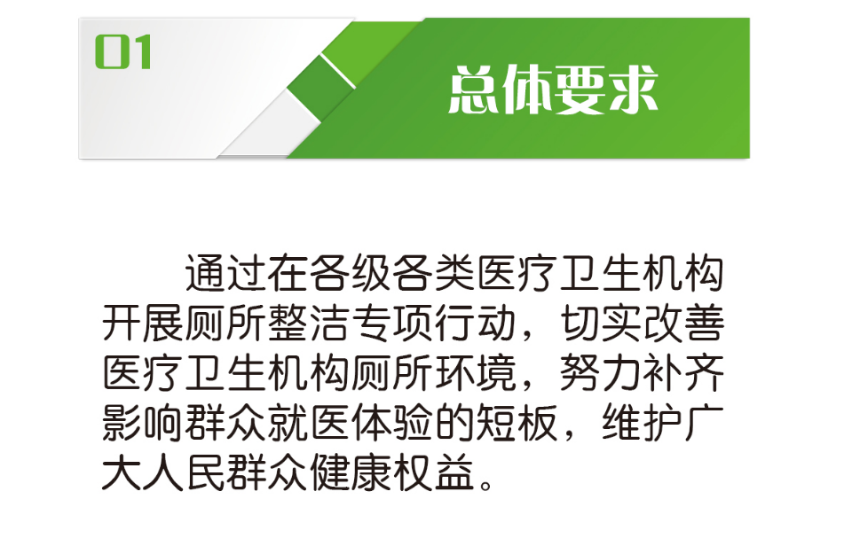 為深入貫徹落實(shí)習(xí)近平總書記關(guān)于“廁所革命”的重要指示批示精神,牢固樹立以人民健康為中心的理念,結(jié)合衛(wèi)生健康領(lǐng)域的行業(yè)特點(diǎn),我們決定在各地醫(yī)療衛(wèi)生機(jī)構(gòu)開展廁所整潔專項(xiàng)行動(dòng),有效改善醫(yī)療衛(wèi)生機(jī)構(gòu)廁所環(huán)境。