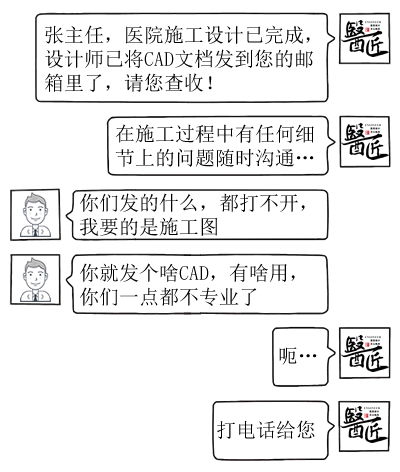 從這張圖片不難看出,設(shè)計(jì)師與客戶之間存在著一定的溝通問題。