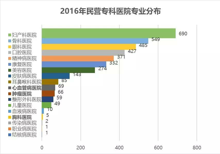 對(duì)比國(guó)際發(fā)達(dá)國(guó)家注重重癥醫(yī)院的打造,我國(guó)民營(yíng)專科醫(yī)院專業(yè)分布卻集中在婦產(chǎn)科、骨科、眼科、口腔科等領(lǐng)域,腫瘤醫(yī)院和心血管病醫(yī)院數(shù)量供給嚴(yán)重不足。我國(guó)癌癥每年新發(fā)病300萬左右,腫瘤醫(yī)院病床使用率超過100%,醫(yī)療服務(wù)資源不足一直是腫瘤治療所面臨的問題。