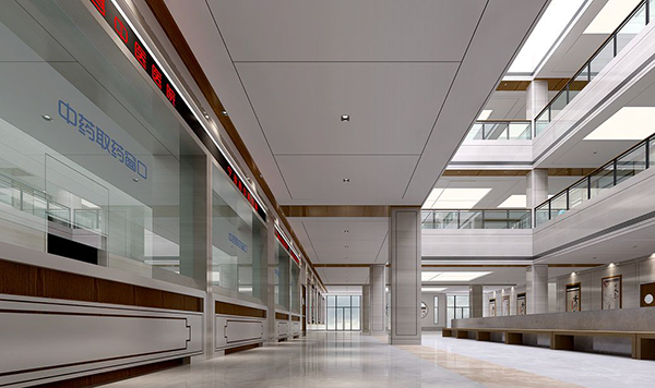 盡量將室內(nèi)設計與戶外自然產(chǎn)生緊密聯(lián)系,減少封閉空間的使用,特別是掛號收費區(qū)及取藥等候區(qū),中藥劑取的時間較長,應營造溫馨舒適的氛圍,以減弱等候人群心理的焦慮感。