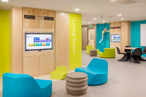 傳統(tǒng)的兒童醫(yī)院設(shè)計(jì)給人一種壓抑、沉悶的感覺(jué),常讓小朋友一進(jìn)入醫(yī)院就感到無(wú)措、恐懼,甚至嚇得哇哇大哭。而現(xiàn)代兒童醫(yī)院設(shè)計(jì)摒棄白色刻板的裝飾,力求打造一個(gè)適合孩子的、充滿童趣的歡樂(lè)空間,讓小朋友不再害怕去醫(yī)院。