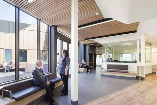 比如,某一國外醫(yī)院將現(xiàn)代設(shè)計風格與醫(yī)療設(shè)施相結(jié)合,通過柔和的燈光、木質(zhì)的地板、多樣化的座椅等家居元素,營造出靜謐溫暖又溫馨自然的家庭氛圍,改變了傳統(tǒng)醫(yī)院冷漠嚴肅的形象,讓患者沒有去醫(yī)院的感覺,有助于患者放松身心。