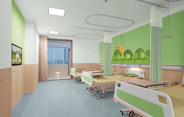 例如,在設計兒童醫(yī)院或者綜合醫(yī)院兒科時,要考慮兒童心理與環(huán)境、與設施之間的互動性、協(xié)調性,適當采用輕松、明快的色彩為主色調,配以對比色,并適度增加綠化裝飾,以使空間充滿生機與活力,營造寧靜、舒適、愉悅的氛圍。