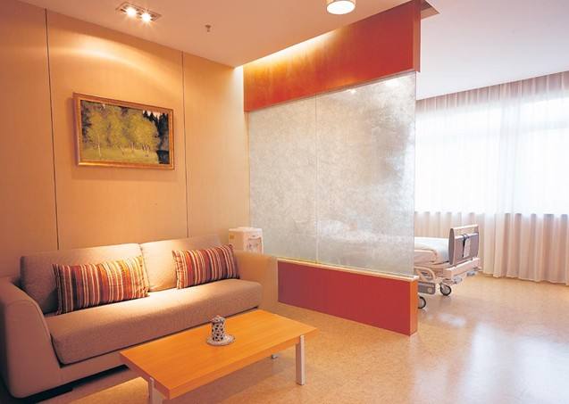 為病人營(yíng)造安靜舒適的康復(fù)環(huán)境,不但體現(xiàn)在醫(yī)院的總體布局上,同時(shí)也要合理選擇建筑材料和構(gòu)造手段以防止外界噪音的干擾,如使用柔性地面,隔墻、窗門(mén)采用隔音材料與構(gòu)造手法,盡最大可能的減少外界環(huán)境的干擾。病房的設(shè)計(jì)不宜過(guò)大,滿足醫(yī)療建筑設(shè)計(jì)規(guī)范即可。有些病房為追求立面效果而在外墻面開(kāi)滿玻璃窗,這樣過(guò)強(qiáng)的光線容易讓患者產(chǎn)生不良的情緒,因此,在爭(zhēng)取良好的光線的同時(shí)應(yīng)充分防止室內(nèi)出現(xiàn)炫光。