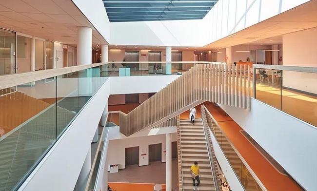 1-3層的步行梯是精心設(shè)計(jì)的,陽光能透過玻璃吊頂灑落下來,給人溫暖。此外,患者、家屬及醫(yī)院?jiǎn)T工還可以適當(dāng)運(yùn)動(dòng),以緩解身心疲勞,調(diào)動(dòng)積極情緒。
