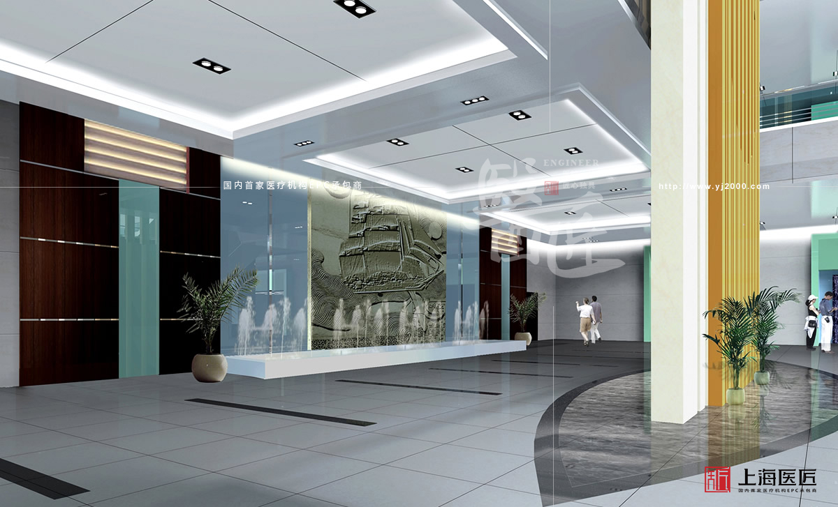 醫(yī)院大廳是展現(xiàn)醫(yī)院文化形象的一大場所,是給人留下的第一印象,投資商或管理者都應(yīng)該重視其裝修設(shè)計(jì)效果。大廳設(shè)計(jì)時(shí),引入了自然光線,且通風(fēng)性強(qiáng),保證了充足的光照來源,也給人舒適自然的感覺,同時(shí)達(dá)到節(jié)能減耗的要求。