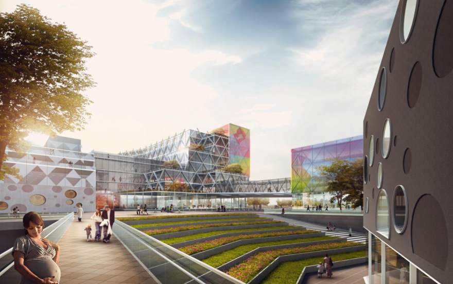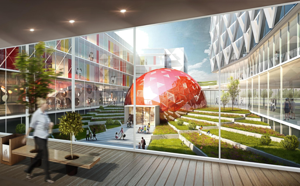醫(yī)院總體設(shè)計(jì)簡(jiǎn)約大方,富于變化。醫(yī)院建筑流線恢宏大氣、顏色亮麗,富于變化,給人專業(yè)感和舒適感。
