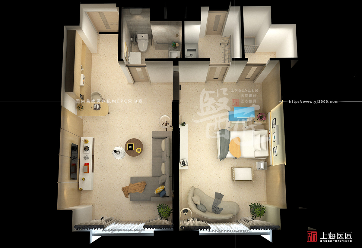 醫(yī)院病房以淡黃、淺綠為主色調(diào),并輔以原木色的家具等,給人以精神上的溫暖和平靜感,不僅給人良好的視覺(jué)效果,還能充分體現(xiàn)出醫(yī)院以人為本的服務(wù)理念。