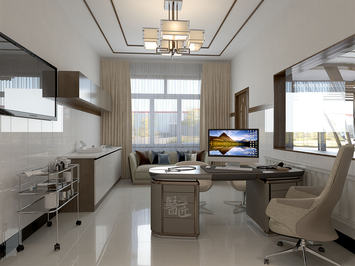 根據(jù)這個(gè)思路,設(shè)計(jì)師在設(shè)計(jì)上使診所的空間介于正式與非正式之間,在保留民族特色的情況下,淺色系的色彩搭配使整個(gè)空間看上去猶如一幅寫意的水墨畫,東方式的婉約優(yōu)雅迎面而來,符合了診所中醫(yī)為主特色。在醫(yī)療設(shè)備與室內(nèi)裝飾上選用符合空間色調(diào)的現(xiàn)代元素,使新中式的建筑設(shè)計(jì)達(dá)到很好的融合。